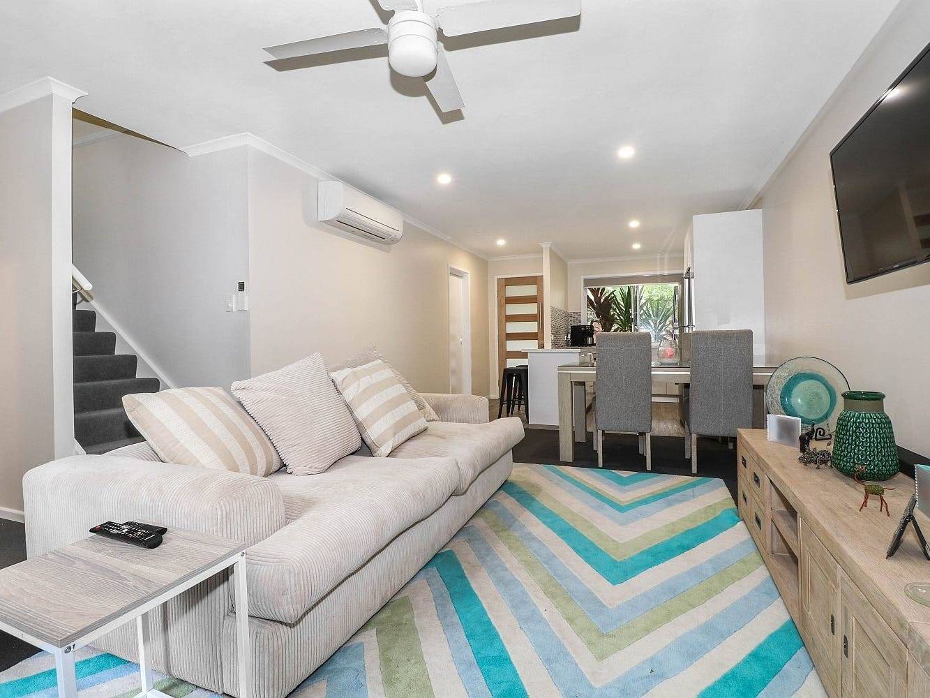This good size townhouse offers size, privacy and convenience. Halfway between the patrolled beach at Mudjimba with it's cafes, restaurants and the shopping centre at Pacific Paradise, you'd never have to use the car.