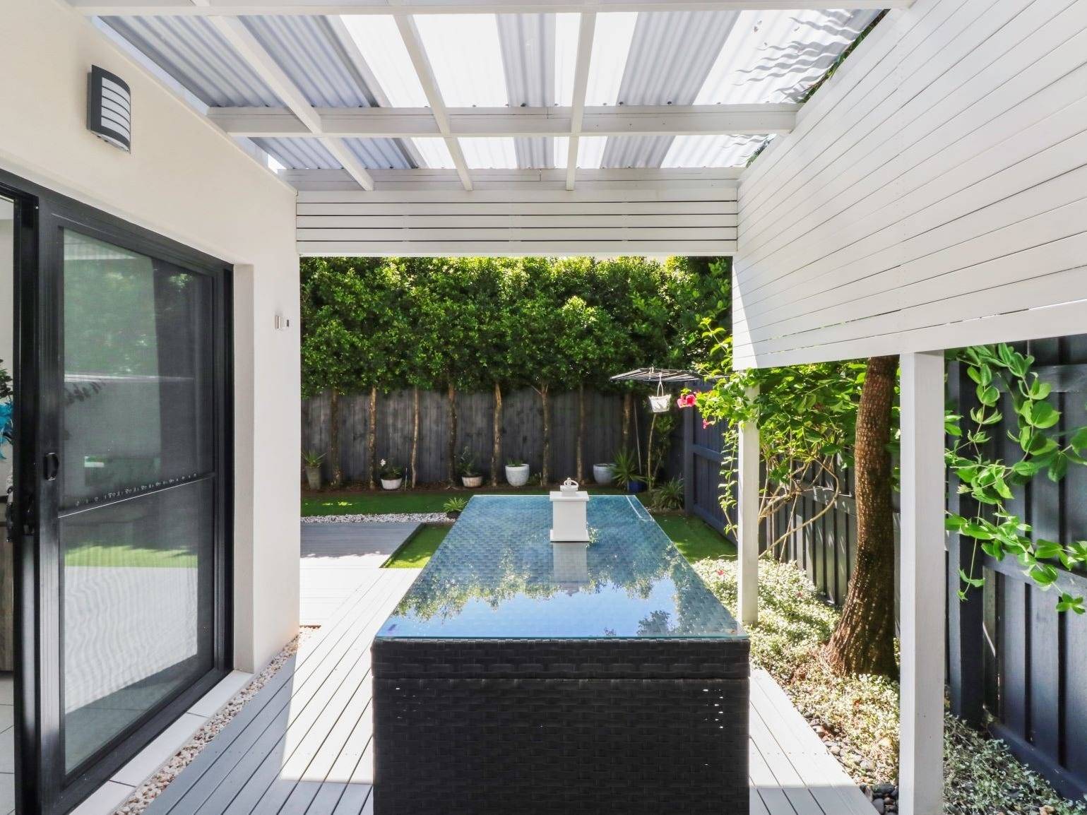 - No joining walls, surrounded by established landscaping for total privacy
