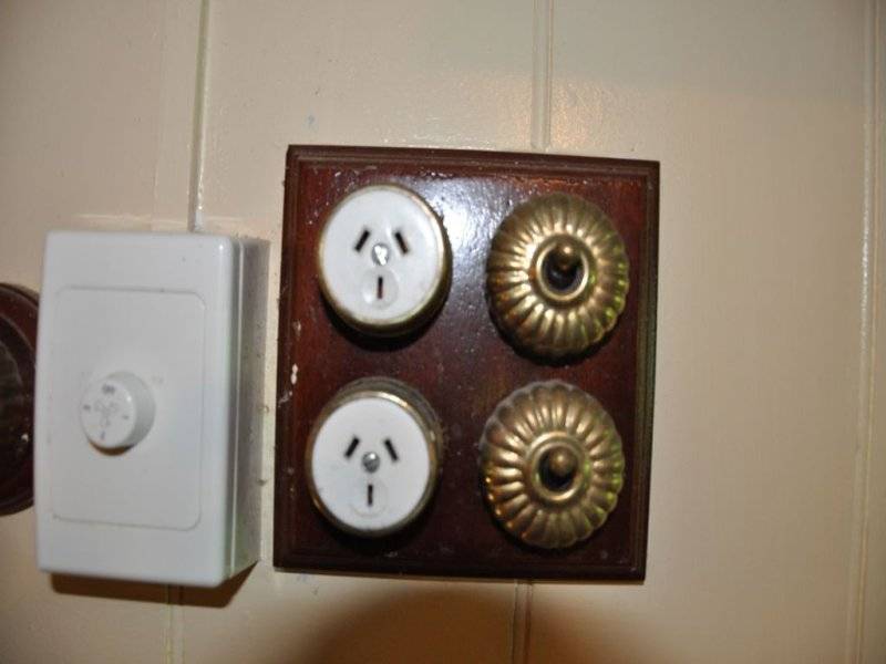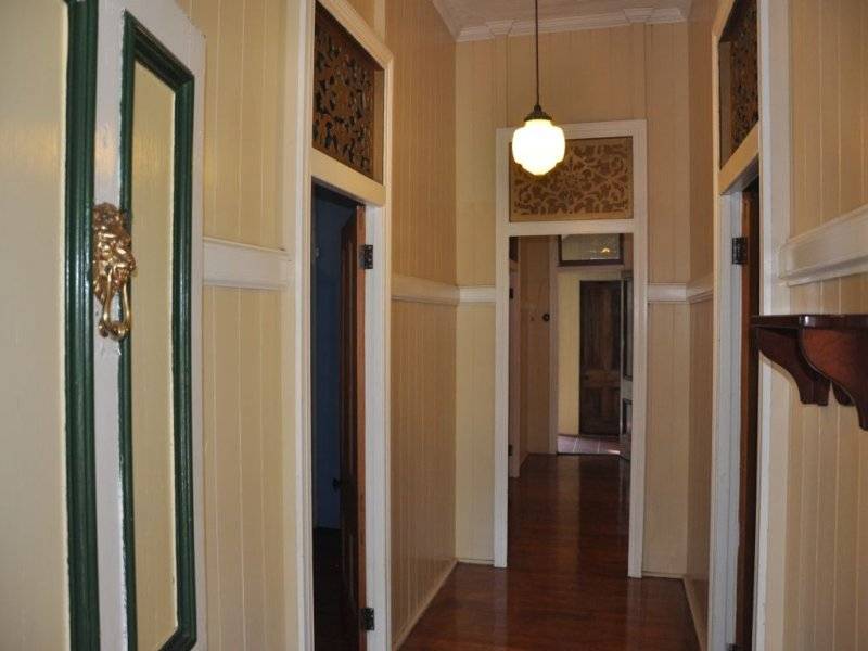 The front steps lead up to a front verandah with a bull-nose roof line and ornate railings. A large main door with its brass knocker and handle opens to the hallway. Lots of features throughout the house include leadlight windows, brass light switches, brass window fittings and old light fittings.