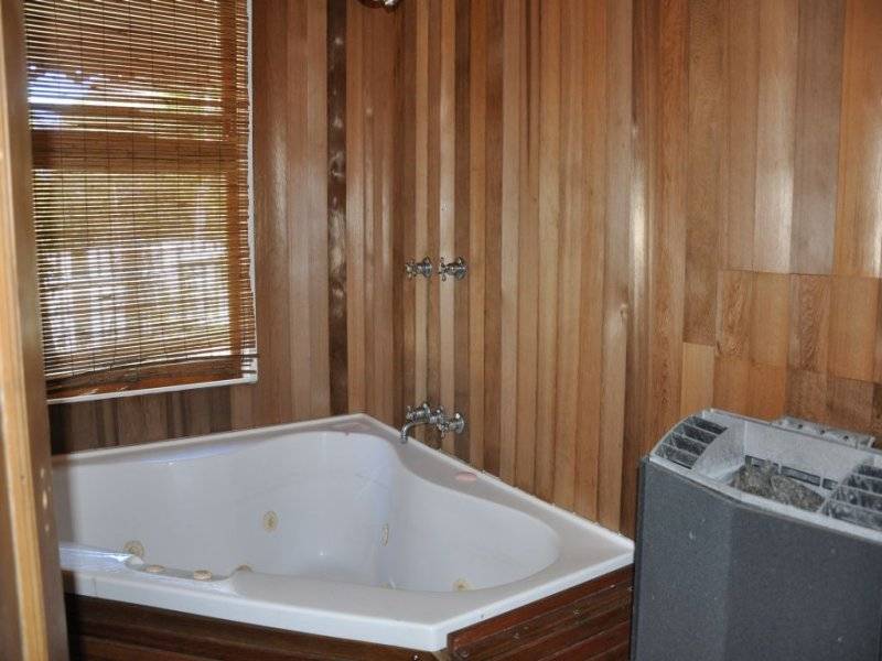 Downstairs - 1/2 bedrooms, open living, kitchen, laundry, bathroom with sauna & spa