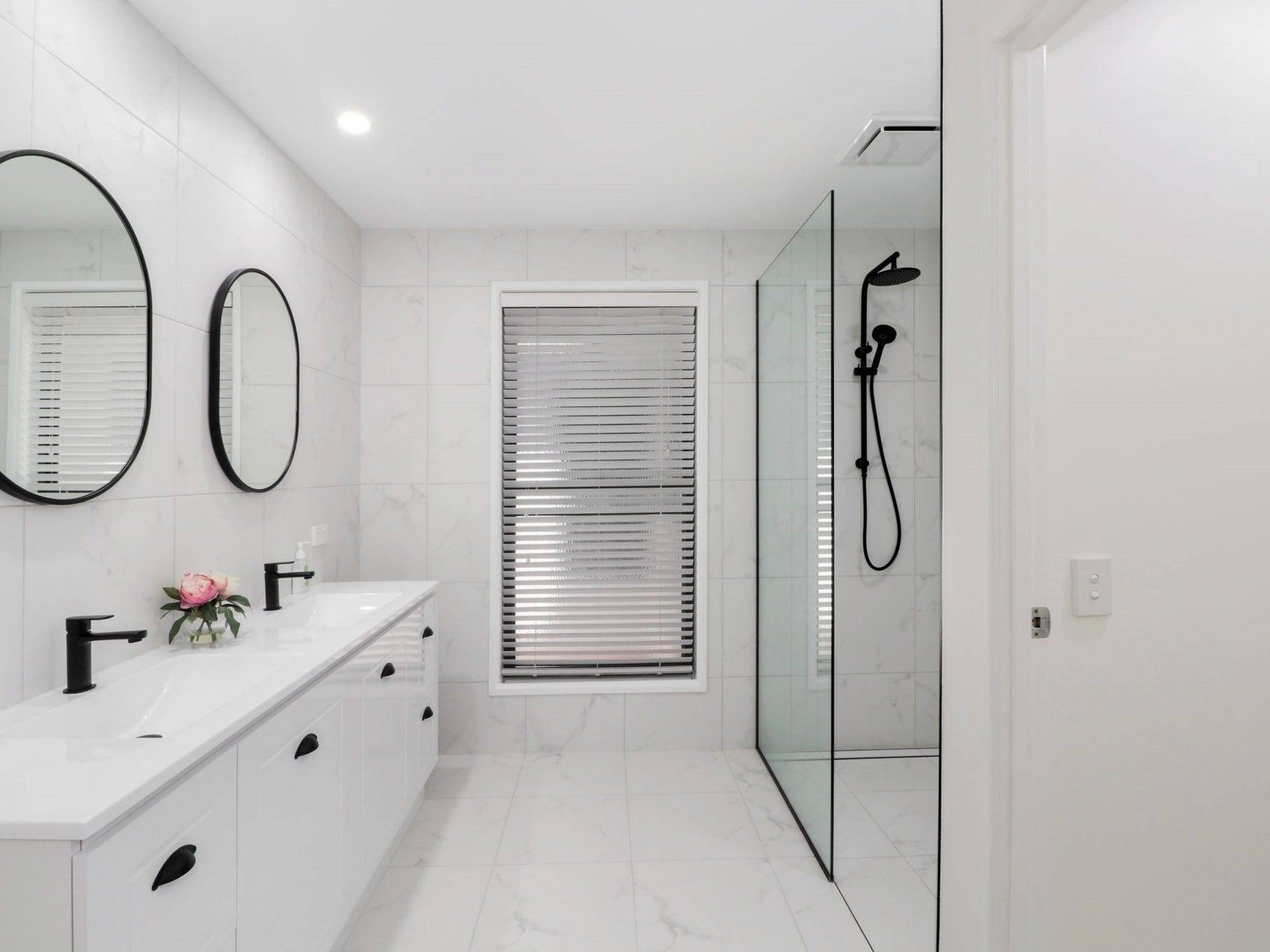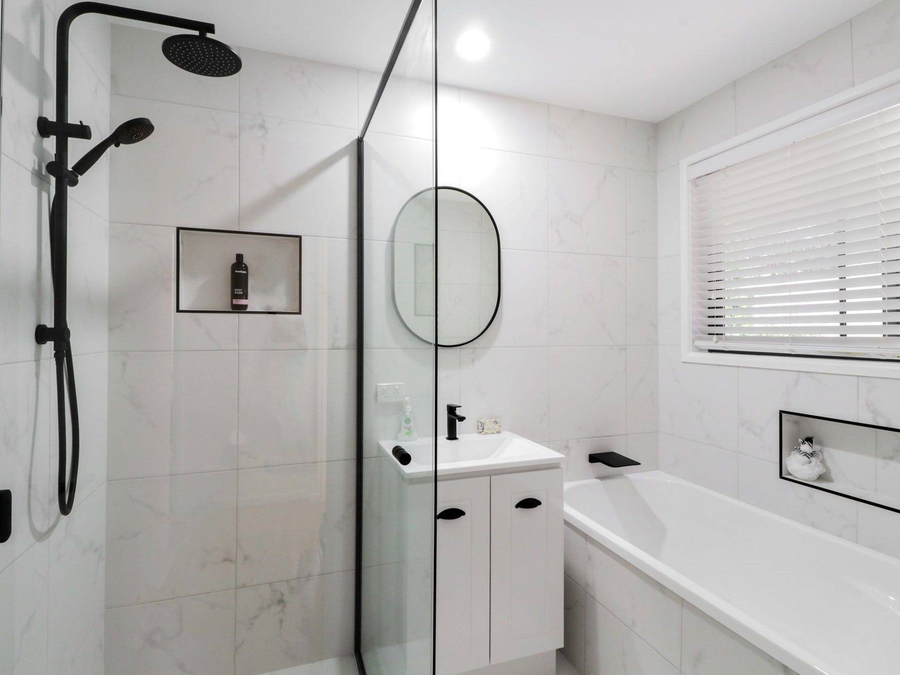 The luxurious bathrooms have floor to ceiling tiles fitted with high quality hardware.