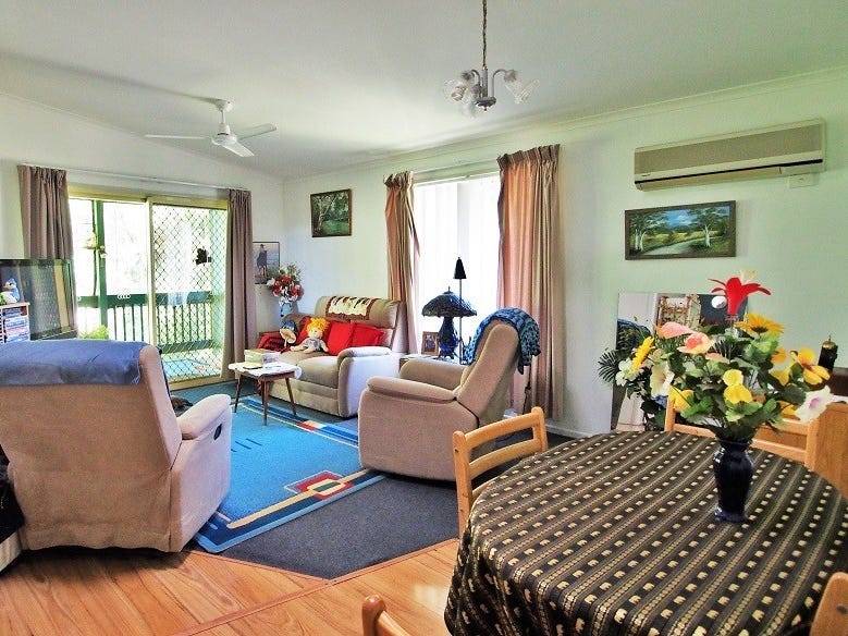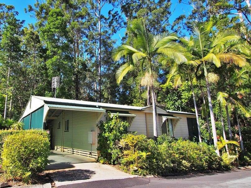 This wonderfully postioned home is private and backs right onto the bushland that captivates the senses and imagnation. Nature calls constantly with the songs of birds and the gentle breezes through the trees. Being right in the back of the resort, there is also a quiet peace that encompasses this home. Consisting of two good sized bedrooms, bathroom and double carport with good sized shed and an extra storage room that can be made into anything really. A good sized verandah looking out into the forest and ample room for a veggie patch. A good functional kitchen and lounge that is bright and cool.