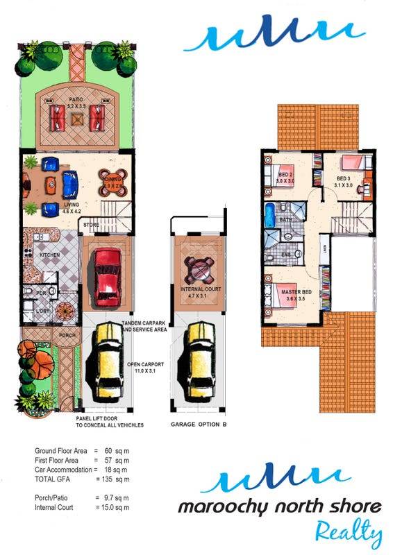 • Connecting front & rear fenced courtyards