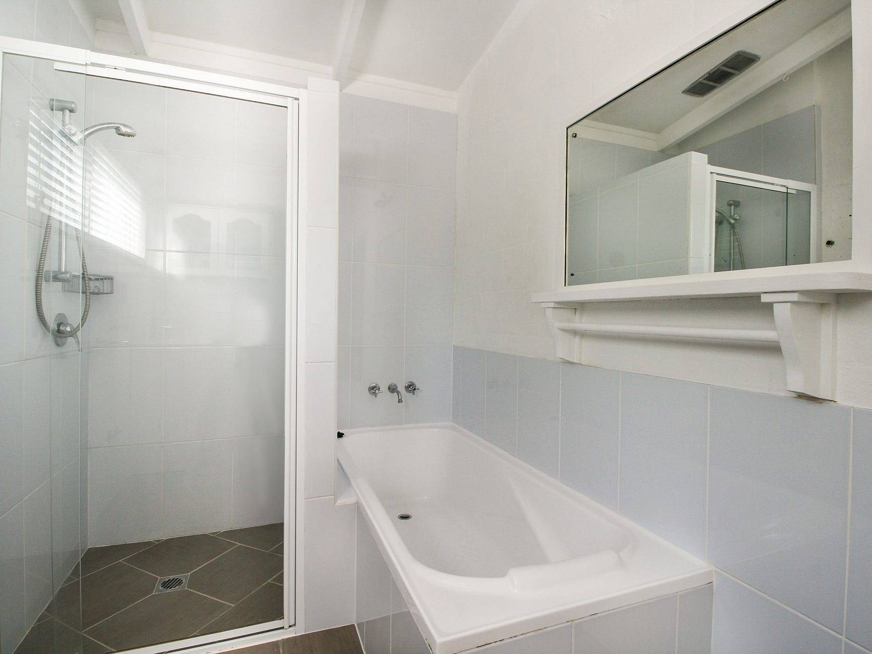- Modern tiled bathroom with bath and separate shower