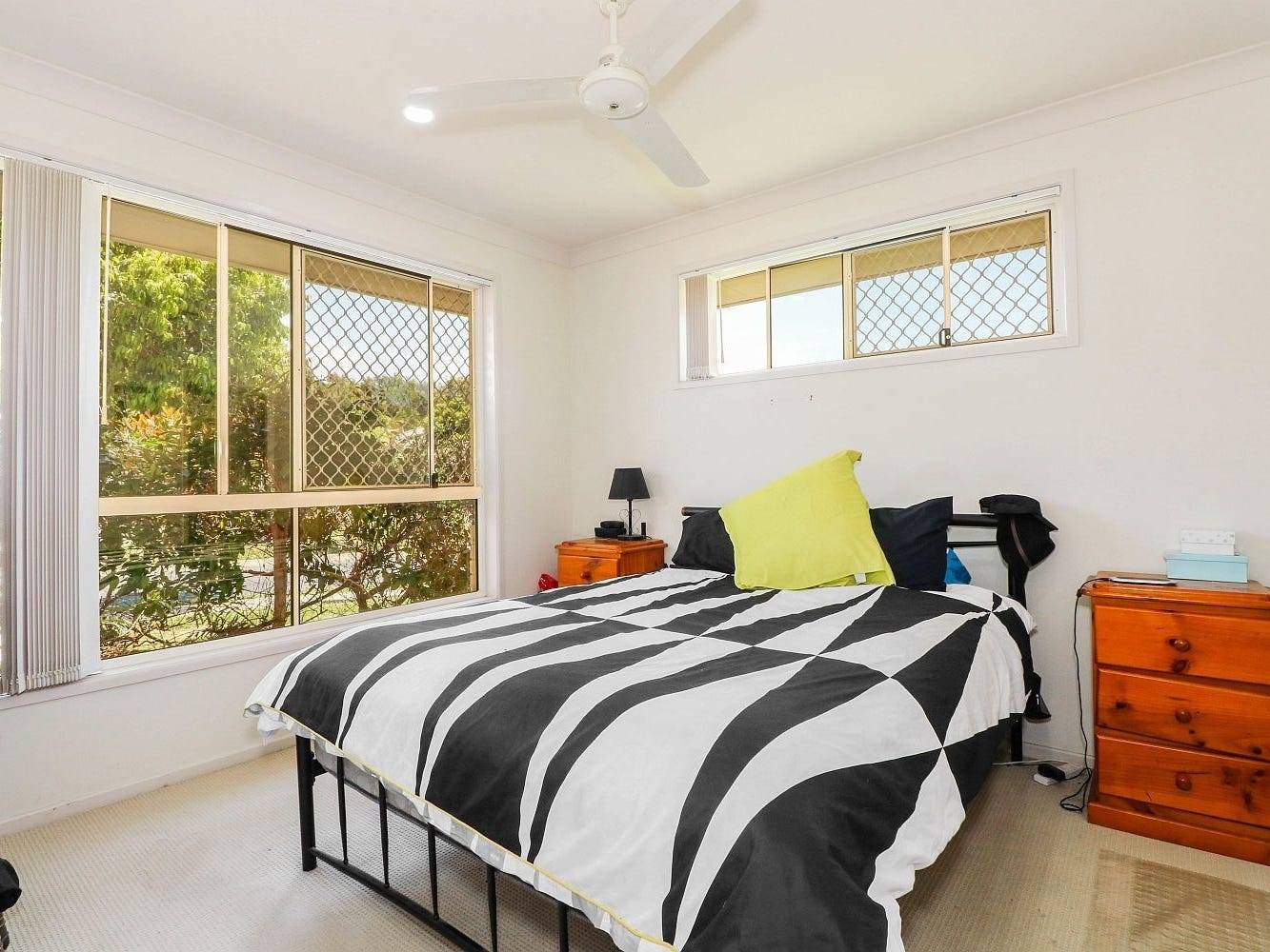 • Designed to maximise light/air. Ceiling fans, security screen doors/windows