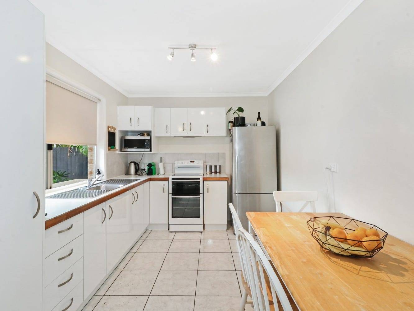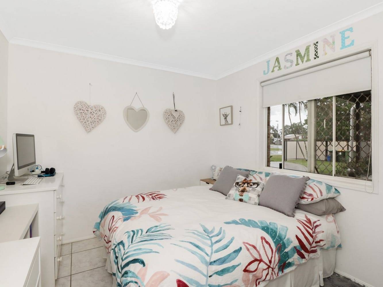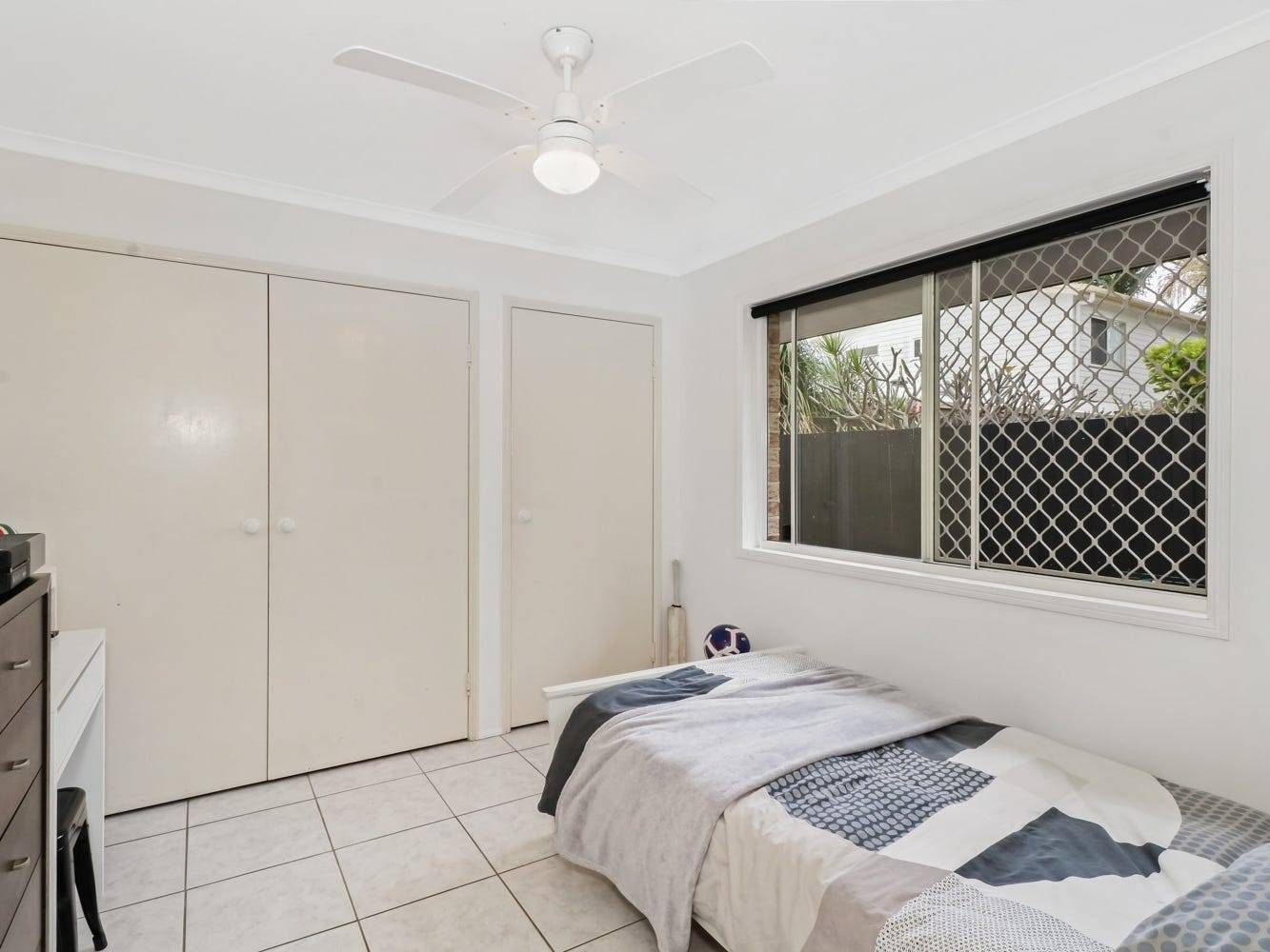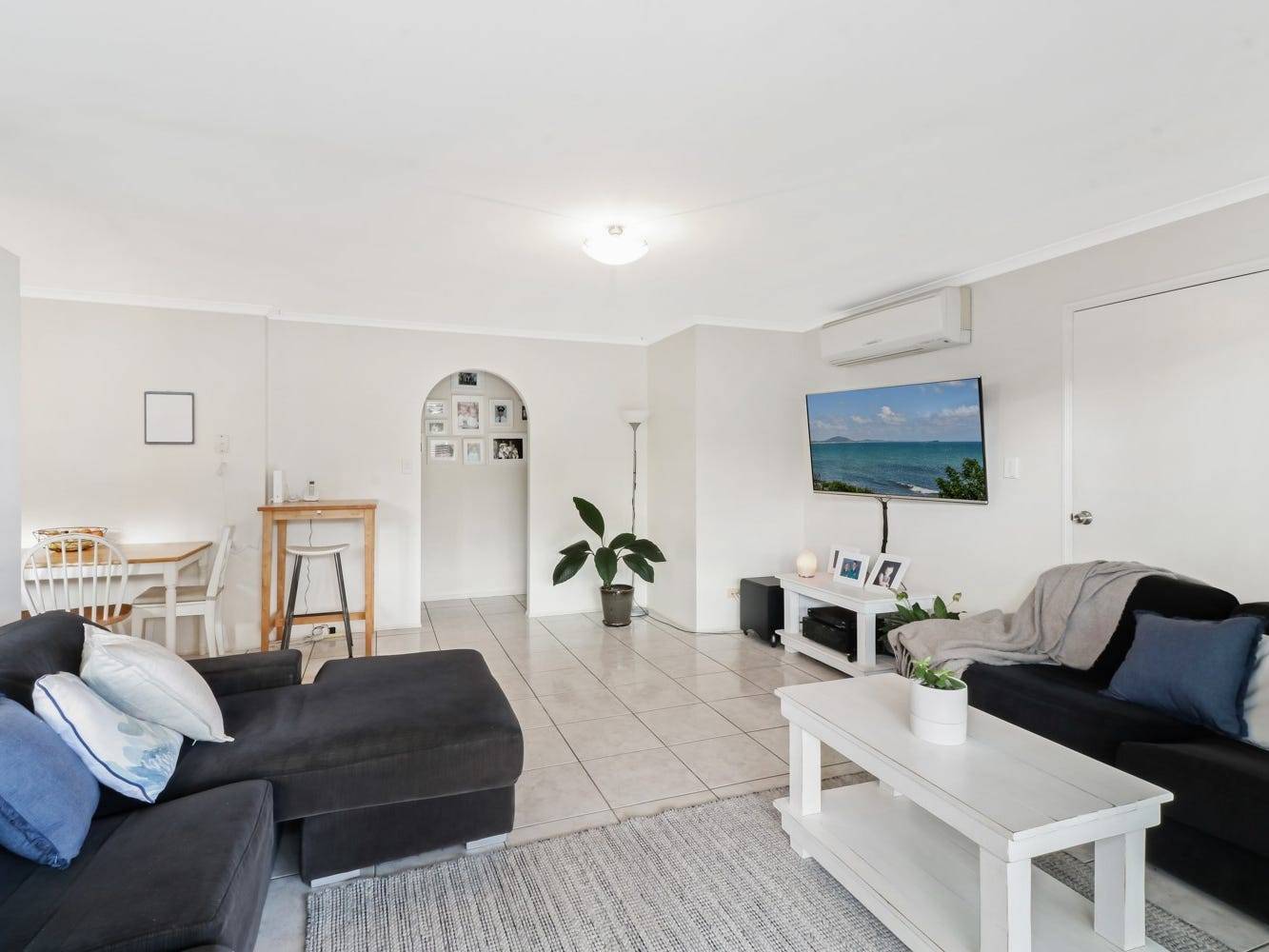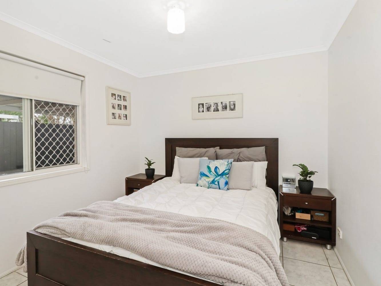 The floor plan is straight forward three bedrooms with built-ins, a bathroom, laundry, kitchen dining area and open plan living room. Low maintenance flooring is throughout, ceiling fans in bedrooms and air-con in the living room.