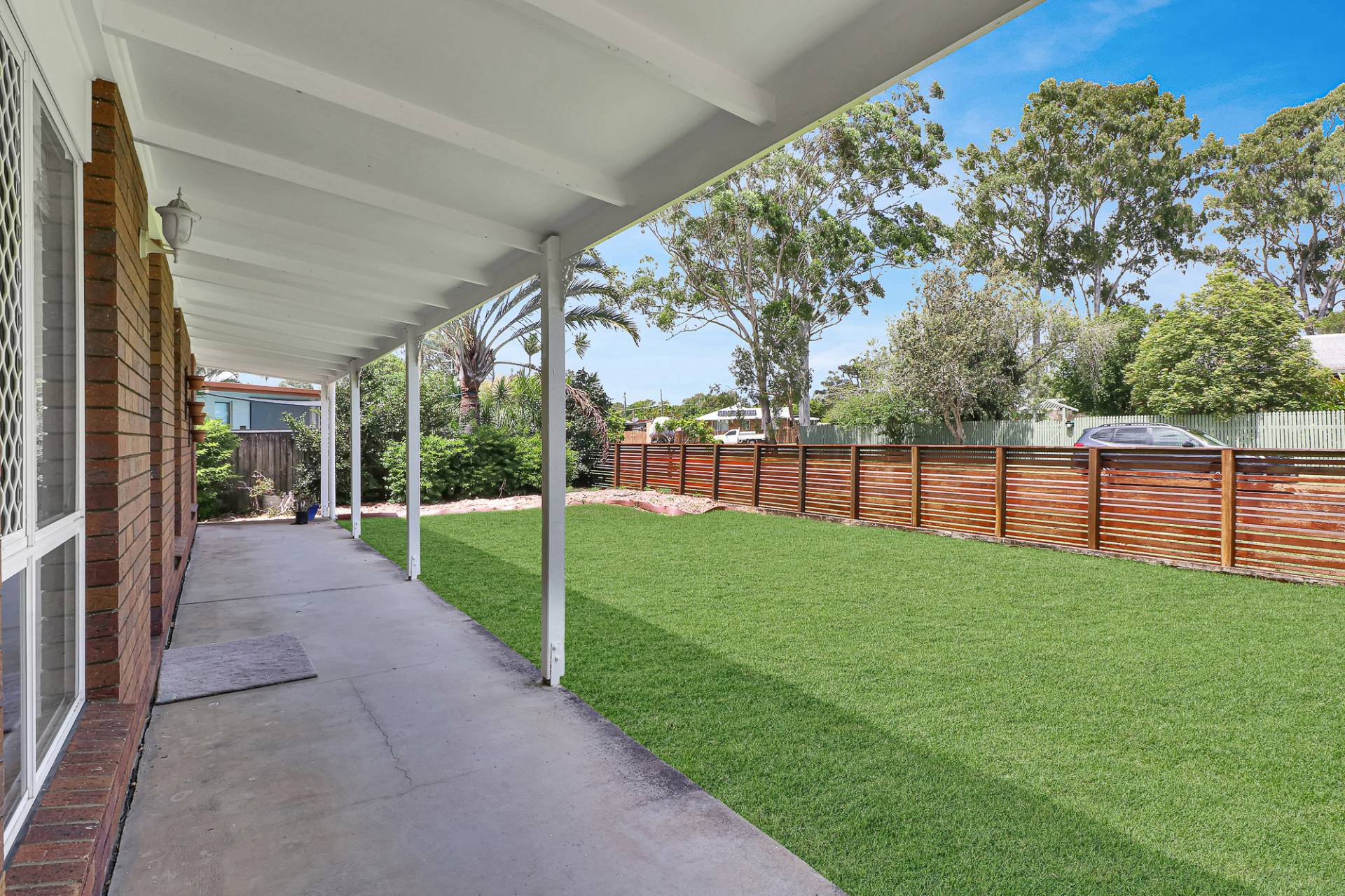 Single carport. Side access for boat or caravan
